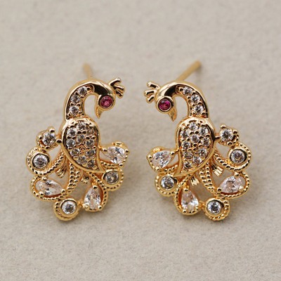 18K Gold Filled - 0.7'' Ruby Eye Peacock Water Drop Clear Circle Zircon Earrings