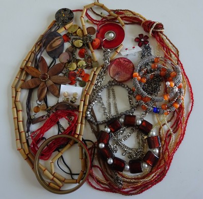 Vintage Mod Job Lot - 20 x Costume Jewellery - Red Orange Silver- Wear or Resell