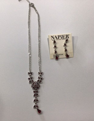 STUNNING NAPIER RED RHINESTONE MATCHING NECKLACE AND DROP EARRING SET
