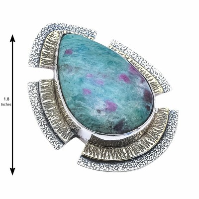 Ruby Fuchsite Gemstone Handmade Ethnic Two Tone 925 Sterling Silver Pendant 1.8"